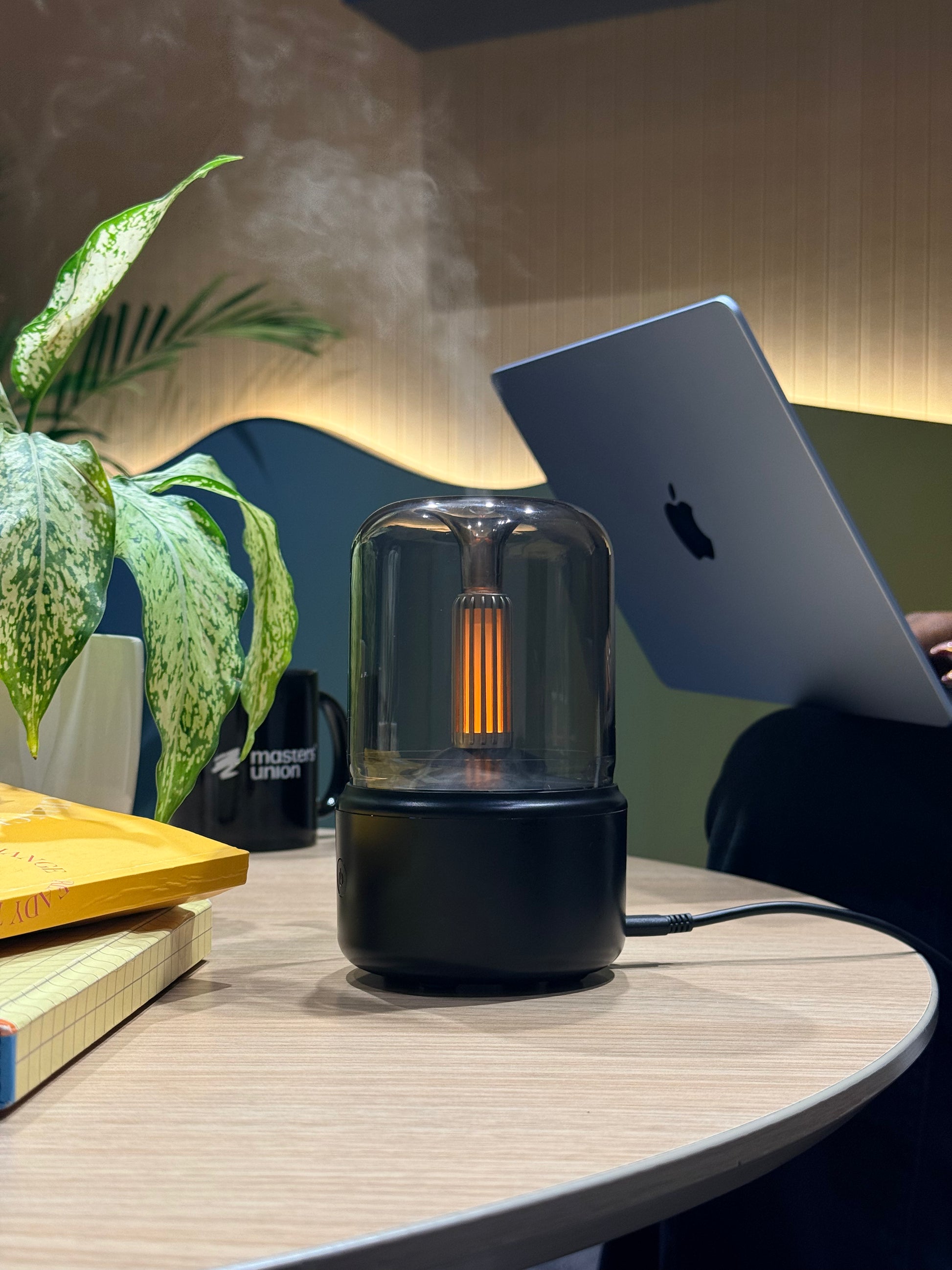 As the mist gently rises and the flame like glow flickers to life, the space begins to soften. The light mimics candlelight, warm and grounding, while the air turns calmer, richer, and more breathable. Each breath feels intentional, slower, deeper, more present. With just a few drops of fragrance, the room transforms into a serene sanctuary where relaxation feels effortless and everyday moments feel intimate and elevated.